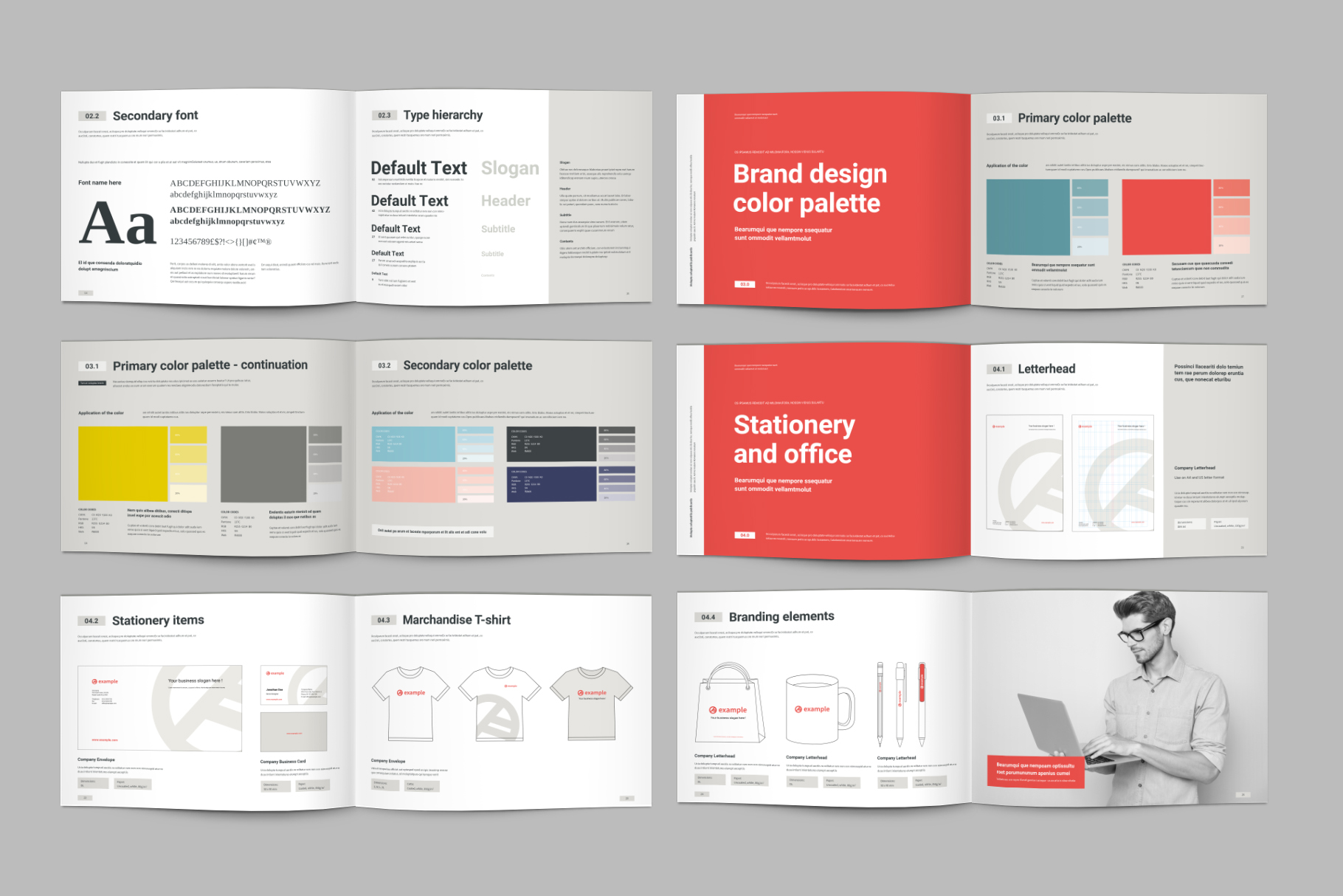 Brand Book Template – Brand Book Guidelines. This is a versatile and powerful template for a Brand Book. 36 pages that will give you possibility to create many unique spreads to make your own comprehensive Guideline for you Business. Includes rules and features necessary to create your stationery items, ads, web advertisement banners and posts, business cards, paper headers.