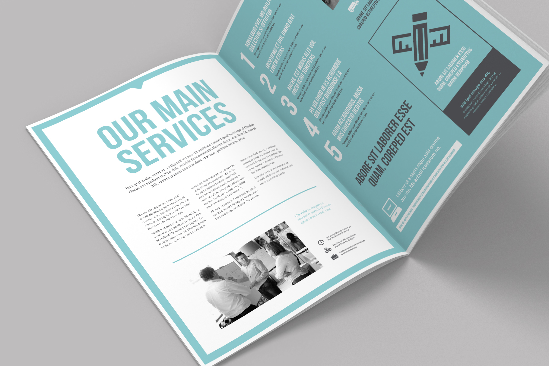 cyan brochure, corporate brochure, business brochure with cyan accents, typoedition, brochure cover