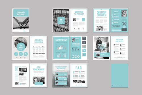 Corporate Brochure. This is a modern and powerful template for a Corporate Brochure. 16 pages possibility of creating many unique spreads.