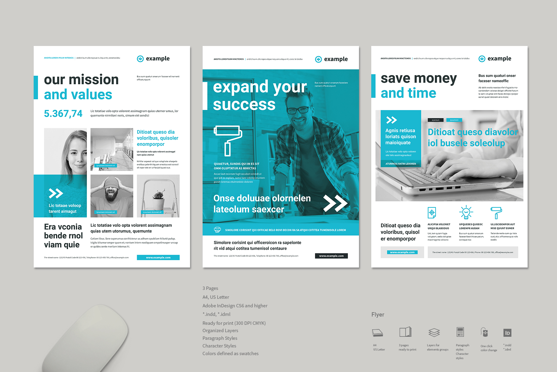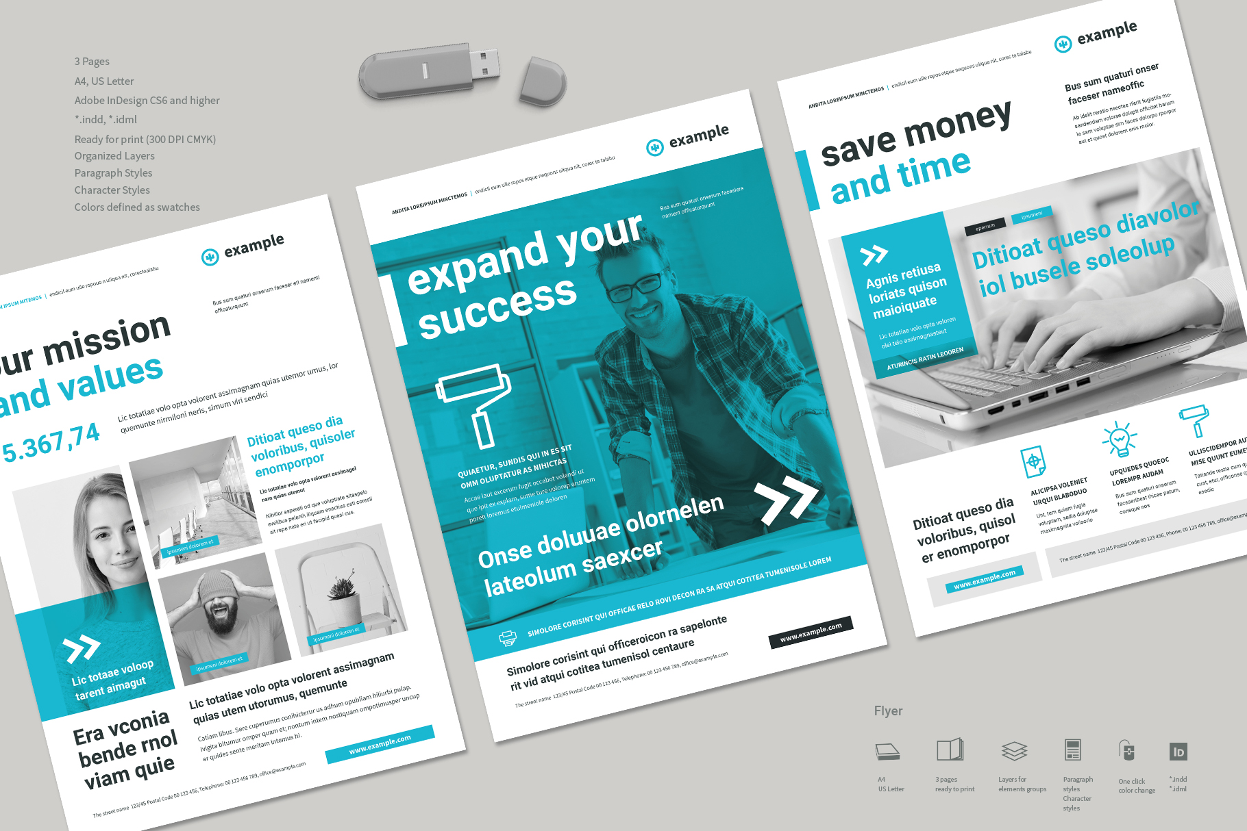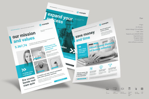 Business Flyer Print Template featuring three unique flyer designs, created with bold black typography, intense cyan accents, and modern cyan backgrounds combined with clean white typography. This business flyer template is designed to be highly universal and adaptable, making it suitable for corporate presentations, startups, creative agencies, premium brands, and professional marketing campaigns.