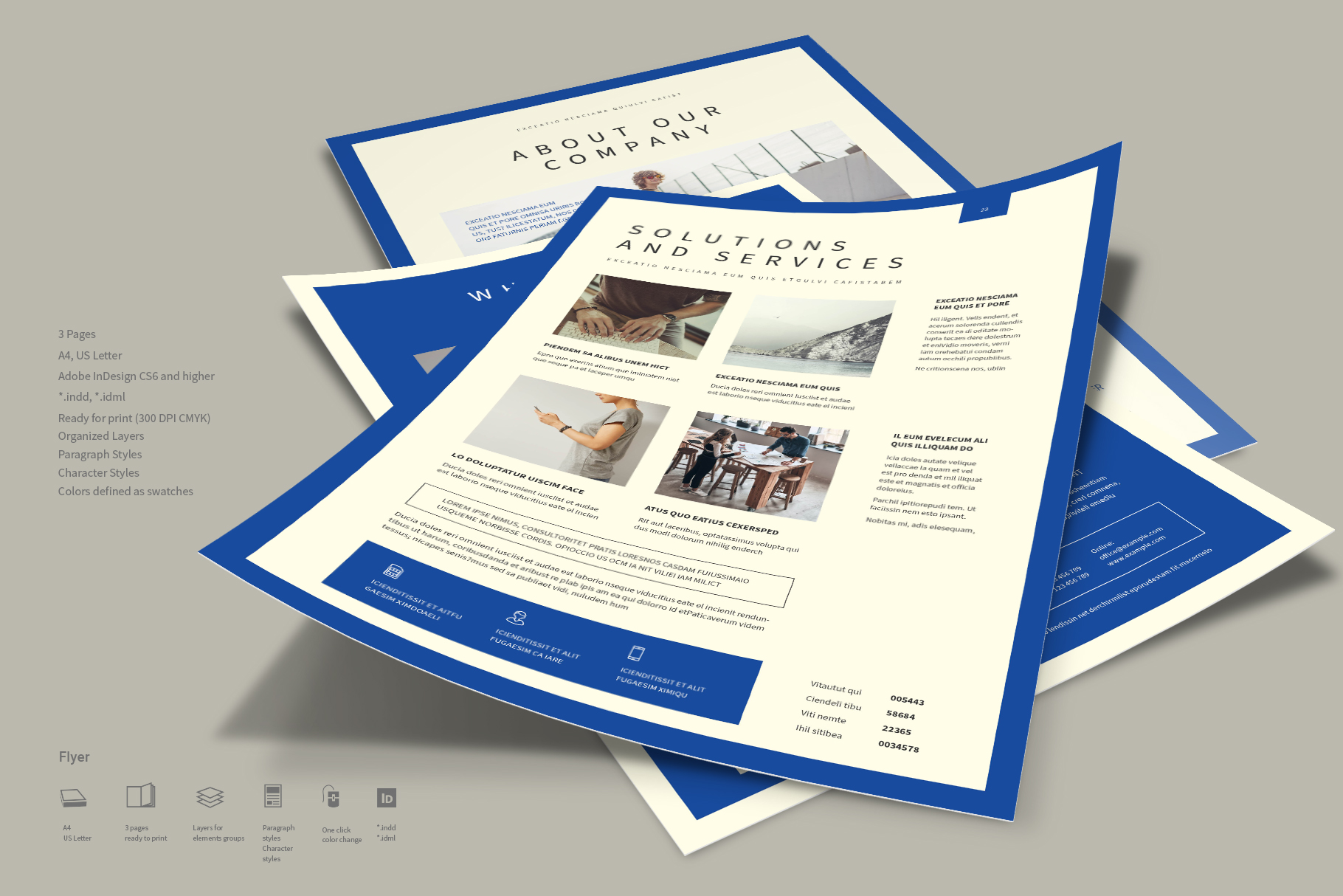 Minimalist flyer template in A4 and US Letter formats, featuring ultramarine accents and clean, professional layouts. Includes three distinct design variations, ideal for corporate communication, events, promotions, and modern brand presentations. Clear hierarchy and strong typography ensure readability and visual impact.