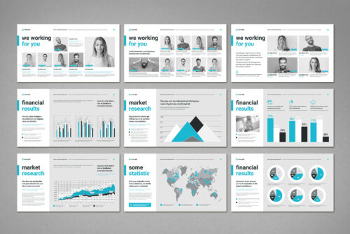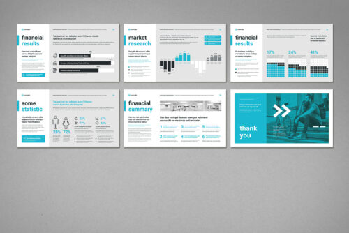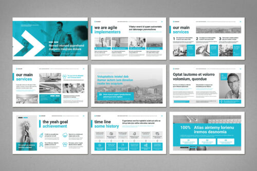 InDesign Presentation. Cyan Accents. Professional design, elegant, clean layout for any type of presentation. All design elements are vectorized and fully editable also in InDesign.