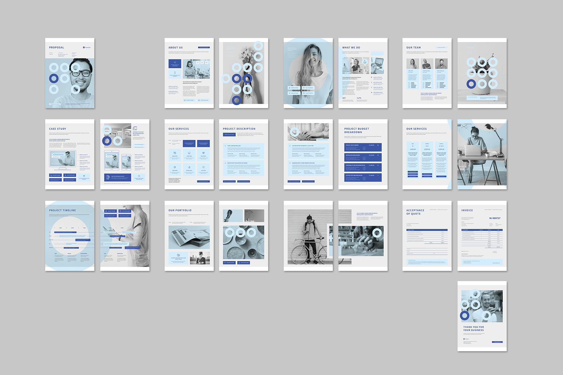 Proposal. This is a modern and powerful template for a Proposal. 24 pages possibility of creating many unique spreads. Extra Word Template included in the package.