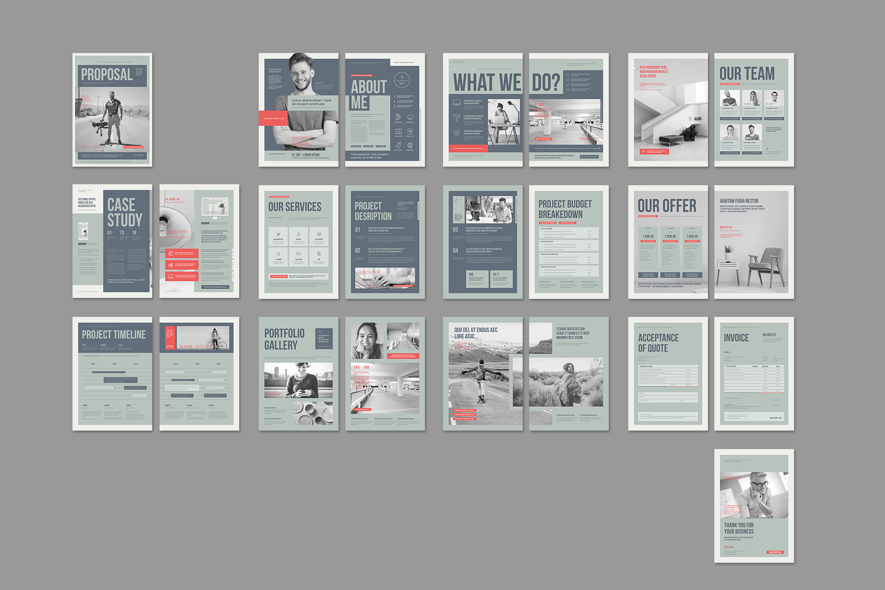 Proposal. This is a modern and powerful template for a Proposal. 20 pages possibility of creating many unique spreads.