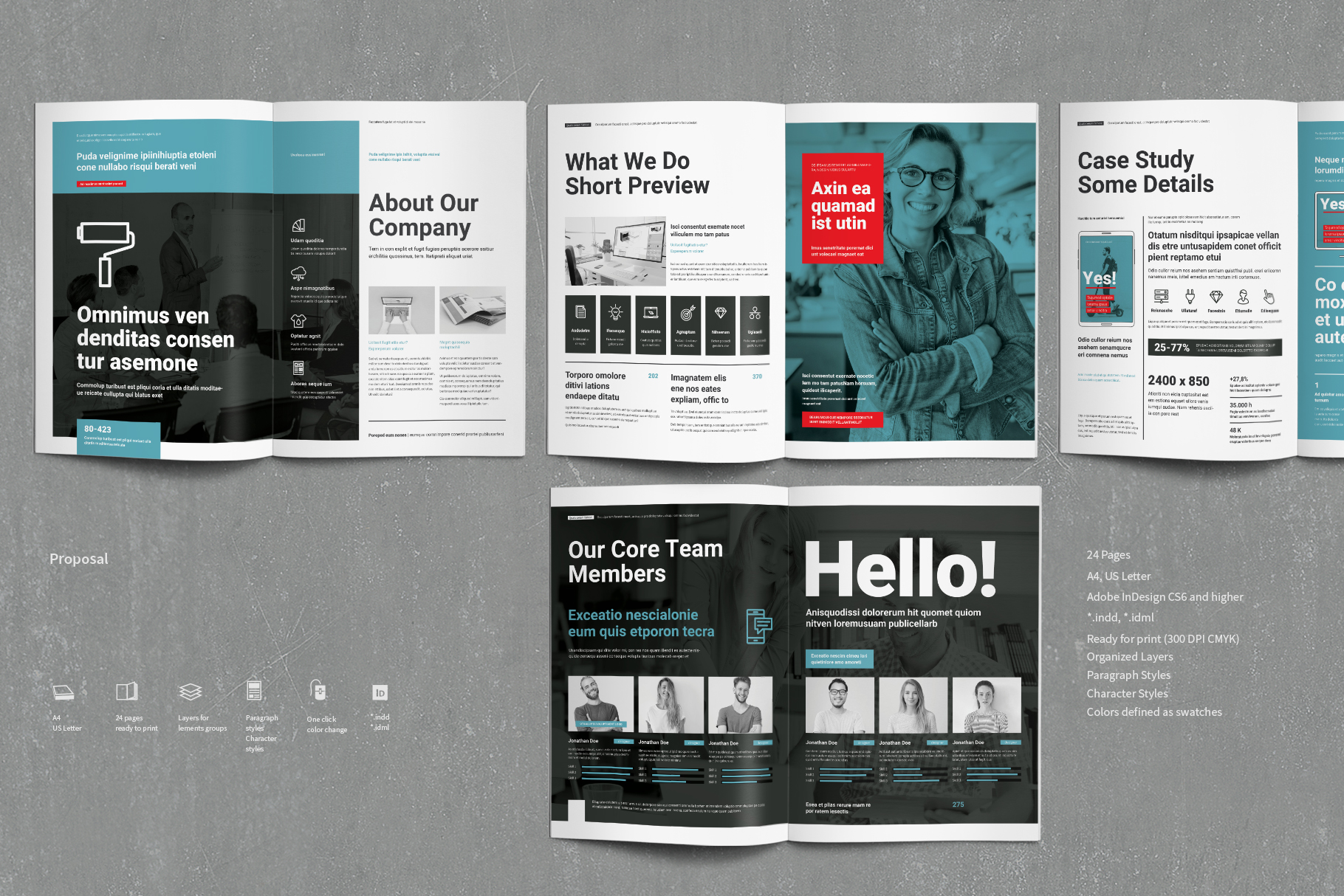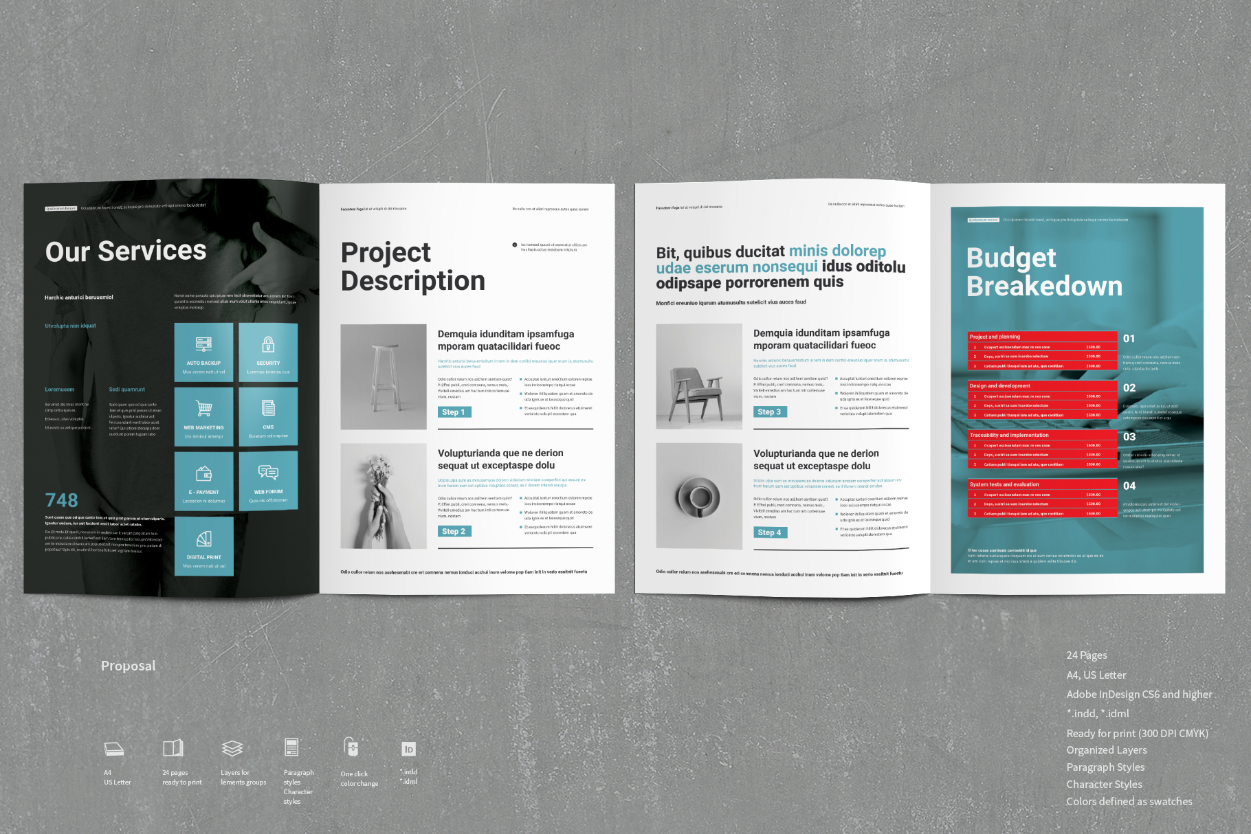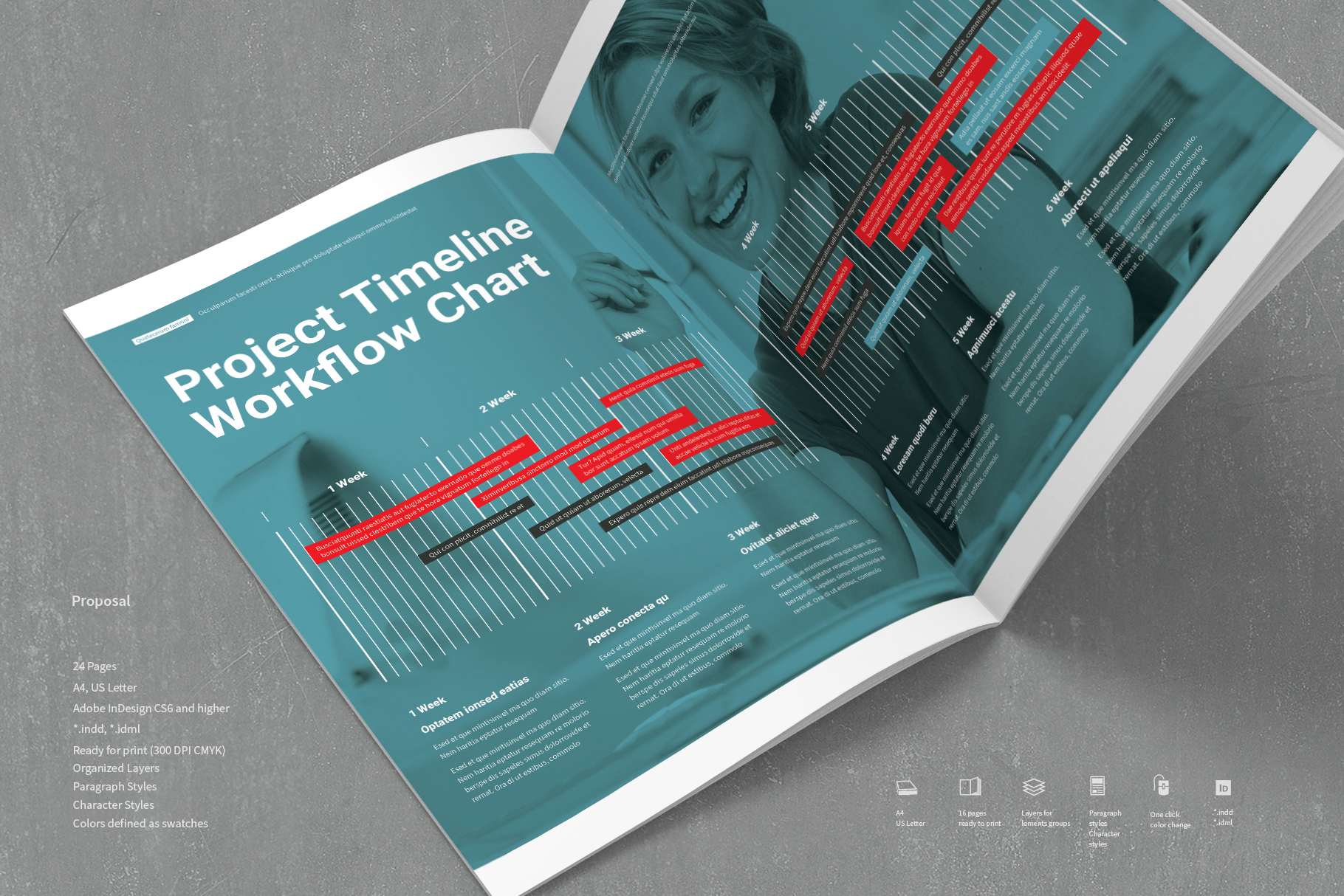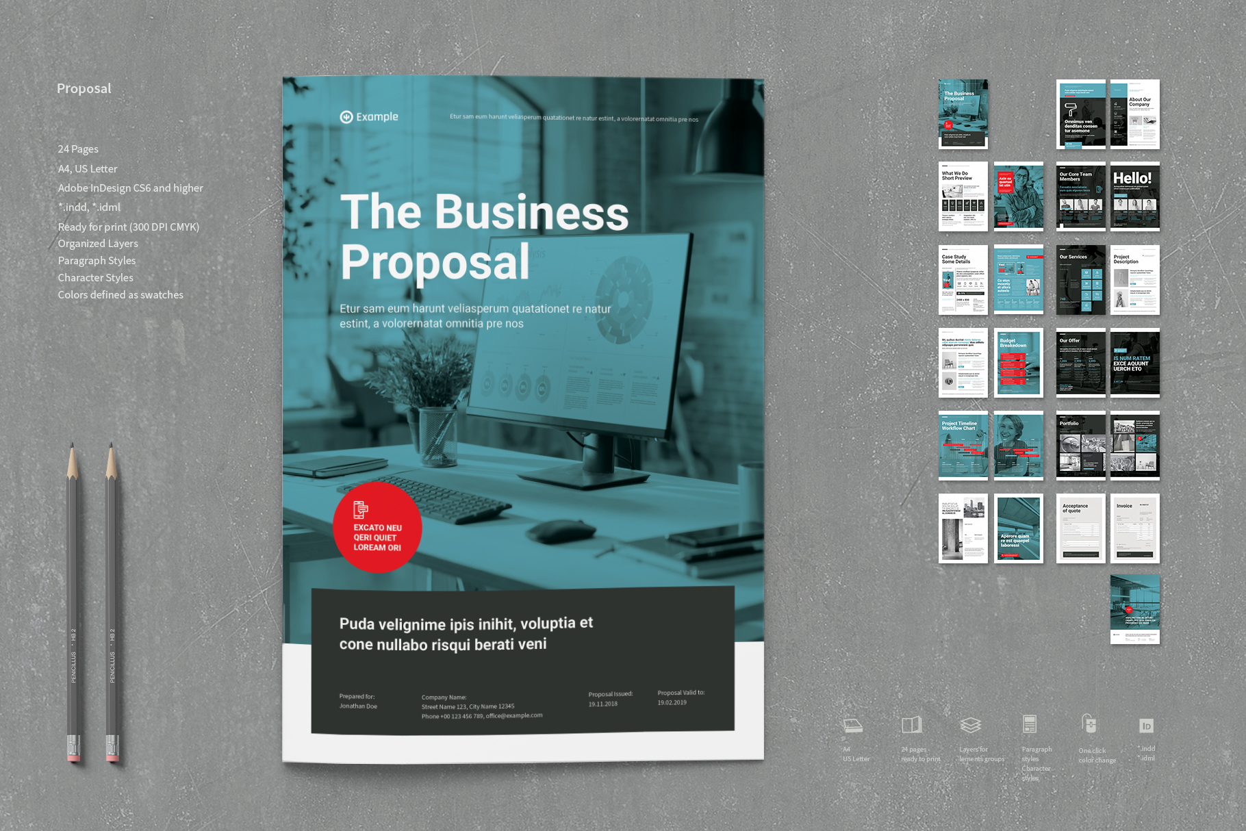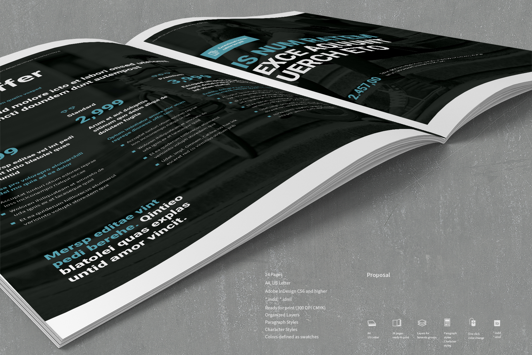 Proposal. This is a modern and powerful template for a Proposal. 24 pages possibility of creating many unique spreads.