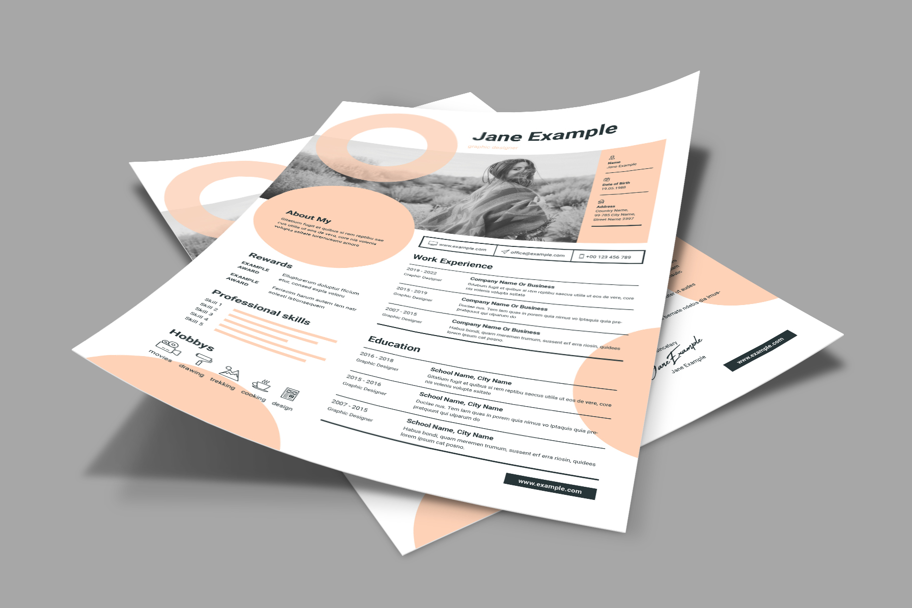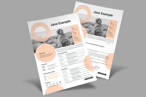 Resume. Includes most popular print sizes: International A4 (210×297 mm), US Letter (8.5×11 inches). Complete and rich layout in gantle femine style containing all necessary elements to compose your own personal Resume to present your skills / education / portfolio.